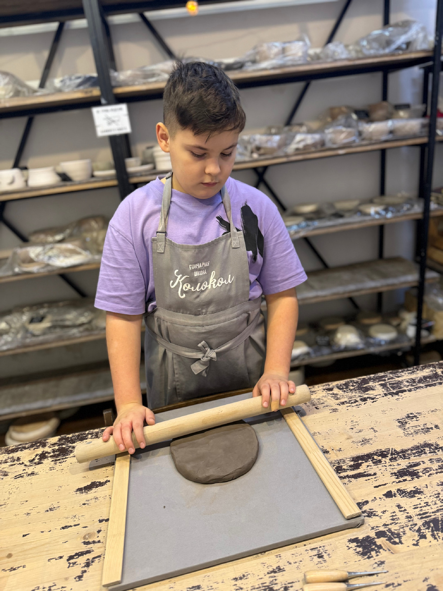 Творческой энергии нужно давать выход! Удачно совпали каникулы, необходимость разнообразить досуг с ребенком, но при этом не забыть и про свое удовольствие. В свете этого мой мозг сгенерировал такую активность: почему бы нам не слепить из глины себе авторскую посуду?! В моем случае от идеи до реализации путь максимально короткий (не люблю тугодумов, и сама стараюсь им не стать). Выбрали для первого опыта гончарную школу недалеко от дома - Колокол. Школы этой сети есть во множестве городов нашей необъятной Родины! Мы взяли индивидуальный мастер-класс «изготовление тарелочки с росписью». На мастер-классе мы лепили тарелочку и можно было нарисовать на ней то, что нравится. Для себя я выбрала круглую форму, а сын в виде кусочка хлеба. Мы решили написать на них надписи и добавить оттенков цветной глиной. А сын на свой хлебушек еще добавил мини круассан. Изначально посуда выглядит серой, но после обжига и глаза почки тарелки станут белыми глянцевыми, с цветным рисунком! В общем п
