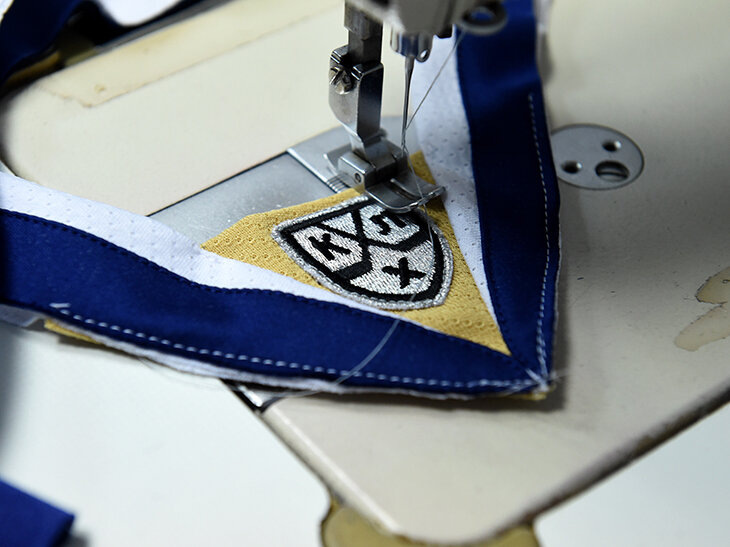 После печати всех элементов формы происходит раскрой: создаются отдельные небольшие детали, из которых швеи собирают готовый комплект. Фамилии и номера, как мы уже узнали, пришиваются отдельно и уже в расположении самих команд.