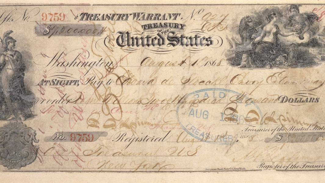Вот это НЕ чек (как обожают писать в статьях). Это ордер на выдачу "сокровищ" на сумму 7200 тыс. долларов, датированный августом 1868 года.