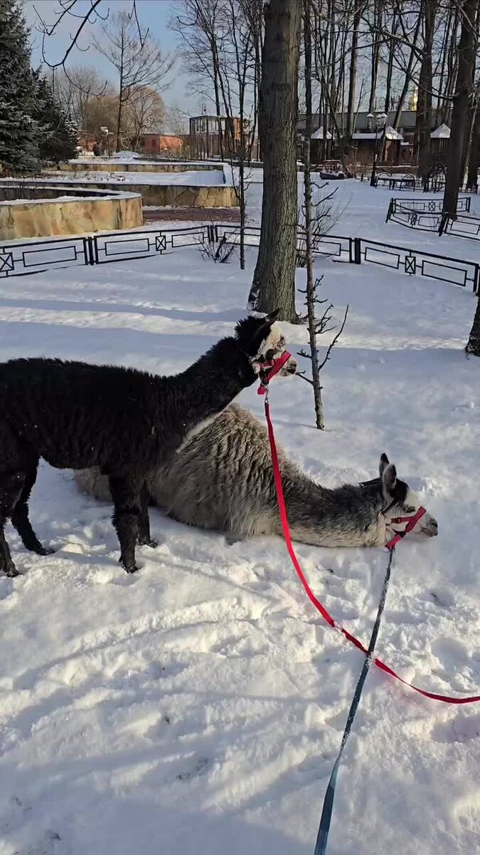 В Ленинградском зоопарке альпаки Сайка и Шарлотка вышли на совместную прогулку