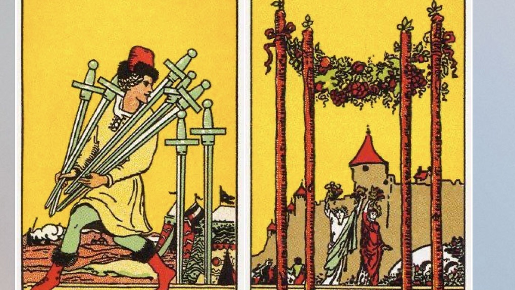 Желтый цвет в Таро — один из самых многогранных. Он может символизировать как радость и свет, так и осознанность, интеллект и даже хитрость, так и божественное присутствие. Чтобы лучше понять его дуальность, рассмотрим две карты, где желтый играет ключевую роль: Семерка Мечей и Четверка Жезлов.