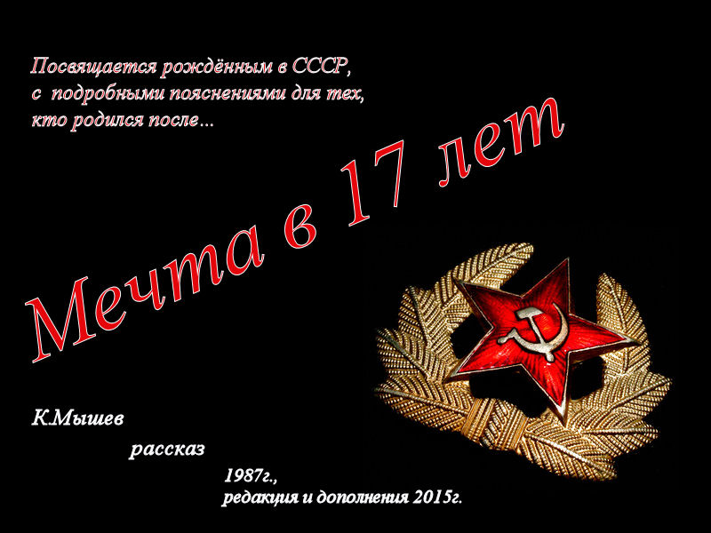 После комендатуры, где Семён встал на воинский учёт и сделал отметку в отпускном билете по случаю своего прибытия в родной город, он прошёл ещё пару остановок, наслаждаясь видом города и мысленно строя планы о проведении отпуска. А дома его уже ждали. Заранее было заготовлено самое-самое лучшее, вкусное, сладкое, и даже полусухое и немножко горьковатое. Вечером произойдёт встреча с друзьями. Каждый расскажет о своих новостях за эти полгода. Кто-то придёт с очередной подругой или подругой той подруги, с которой он встречался до этого. У студентов, в отличие от размеренной и строгой курсантской жизни, времени на поиск представителей противоположного пола гораздо больше. Да и выбора и возможностей на пути к этой заманчивой идее неимоверное количество. У курсантов всё происходит быстро и стремительно, без долгих гражданских конфетно-цветочных прелюдий. Нет, конечно, курсанты дарят цветы и конфеты, но это одно из звеньев общего стратегического манёвра, часть целенаправленной операции по зачистке и промывке мозгов. Пришёл, увидел, уложил! Получилось - герой, увольнение прошло не зря. На первом курсе военного училища ещё не у каждого была своя «Настенька», которая должна была верно ждать своего курсанта. Но если она была у него на присяге*, то это как помолвка. Ты присягаешь на верность Родине, а девушка твоя смотрит во все глаза и мысленно как бы присягает тебе. Ну, ты как бы так думаешь и надеешься на неё, на эту её верность. Ты же Родине не собираешься изменять, и раз выбрал профессию офицера, то сознательно отдал себя в её руки и с горячим сердцем под своими словами расписался. А «Настенька» - то твоя или не была на присяге, или ещё не вспыхнула яркой ослепительной звёздочкой там, в районе комсомольского значка. Или её вообще пока нет, а есть плод, образ твоих ночных грёз и мечтаний, которые в течение полугода были вбиты в твой мозг старшиной, через команду «Курс, отбой!». Ну а дальше начиналась импровизация, в зависимости от настроения старшины: