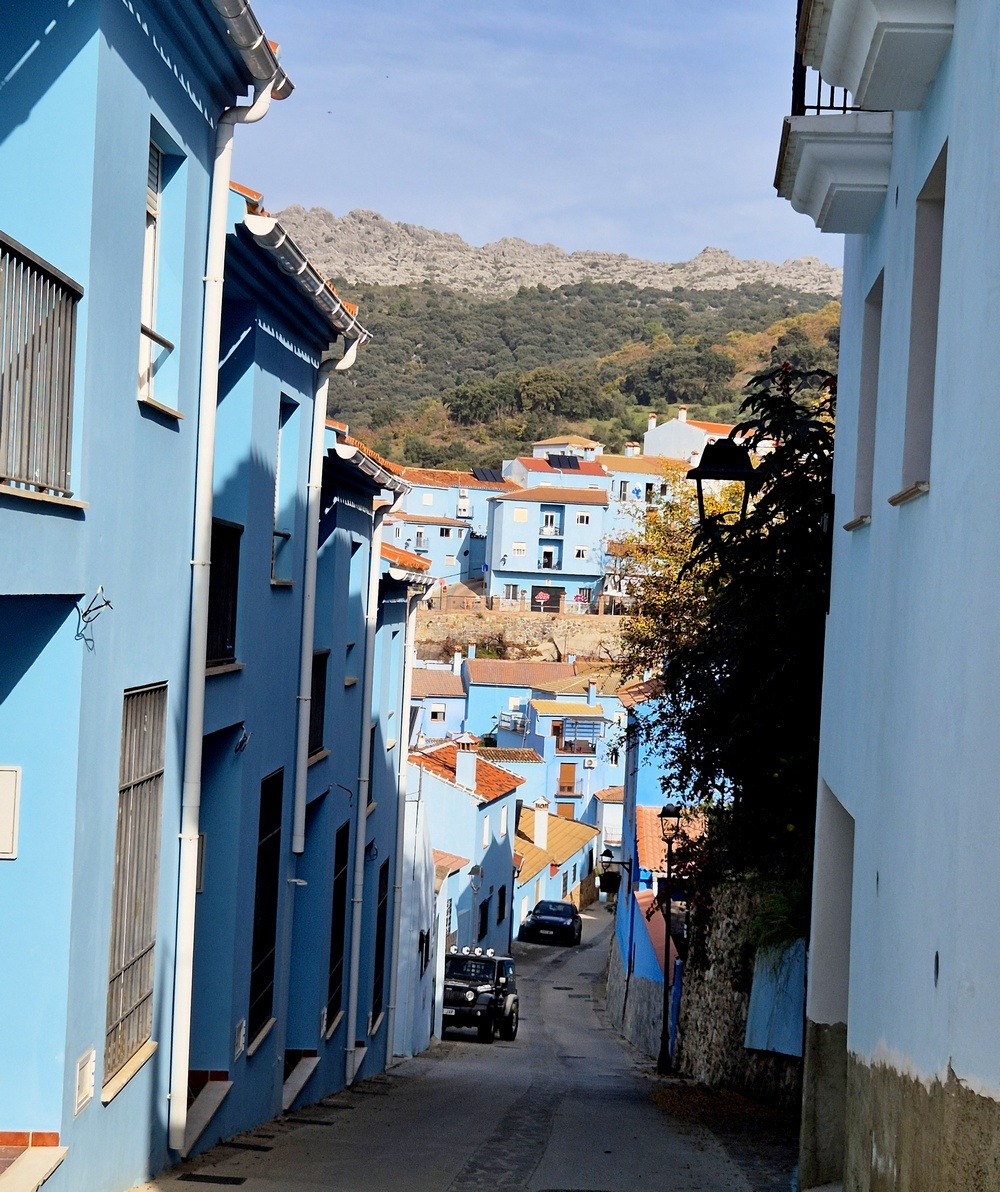 Ху́скар (Júzcar) – это небольшой городок в провинции Малага, Андалусия, Испания. Он известен тем, что все его дома, выкрашены в голубой цвет. До 2011 года Хускар был одним из многих белых городков (pueblos blancos) Андалусии, известных своими белоснежными домами. Но компания Sony Pictures выбрала его для продвижения своего фильма "Смурфики" ("The Smurfs"). Sony предложила городу выкрасить все здания в голубой цвет (цвет Смурфиков) в обмен на финансовую помощь городу. Местные жители согласились, и весь город был перекрашен в голубой цвет за несколько месяцев до премьеры фильма. Пропустить такое мы не могли, тем более что крюк для посещения голубого городка составлял всего 30 с небольшим километров. Правда я, составляя план поездки, не учла, что эти 30 километров надо ехать по узенькому серпантину, где с трудом и не везде могут разъехаться 2 небольших автомобиля Так что если соберетесь ехать в Хускар, запаситесь памперсами. Город находится высоко в горах Но, несмотря на сложности дороги