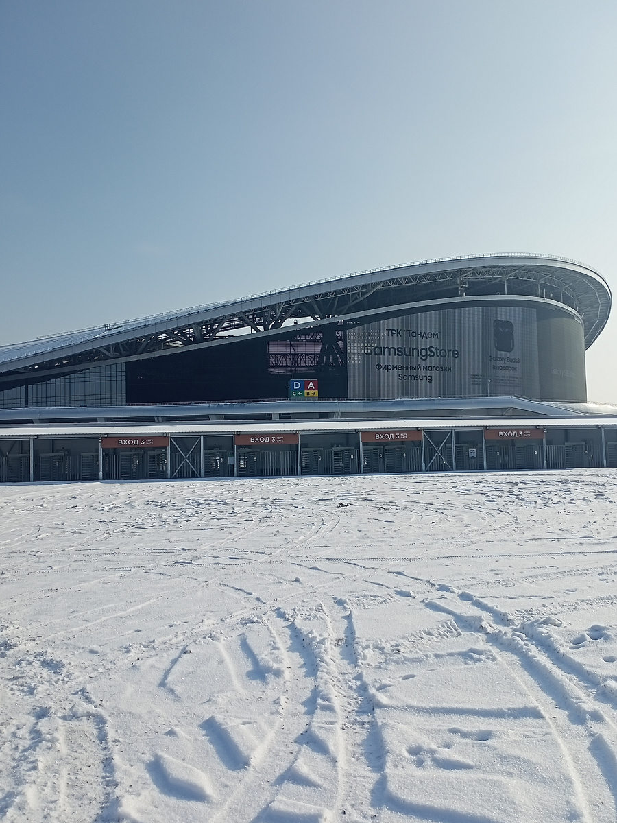 Это стадион Казань - арена. Чтобы туда попасть с улицы задней части здания,нужно обойти несколько километров. Ограждение из железного забора,напоминающего тюрьму. Один вход и выход с надзирателями и обязательным проходом в РМ. Подумайте ,что будет ,если случится пожар. Люди не смогут выбраться,потому что все двери заблокированы и сотрудников раз два и обчелся.,и то эти сотрудники ни за что не отвечают,им кайфово геноцидить людей и пропускать через тюремные ограждения. У них лица как у настоящих надзирателей- жестокие и непреклонные. Это Россия в лице настоящего времени.