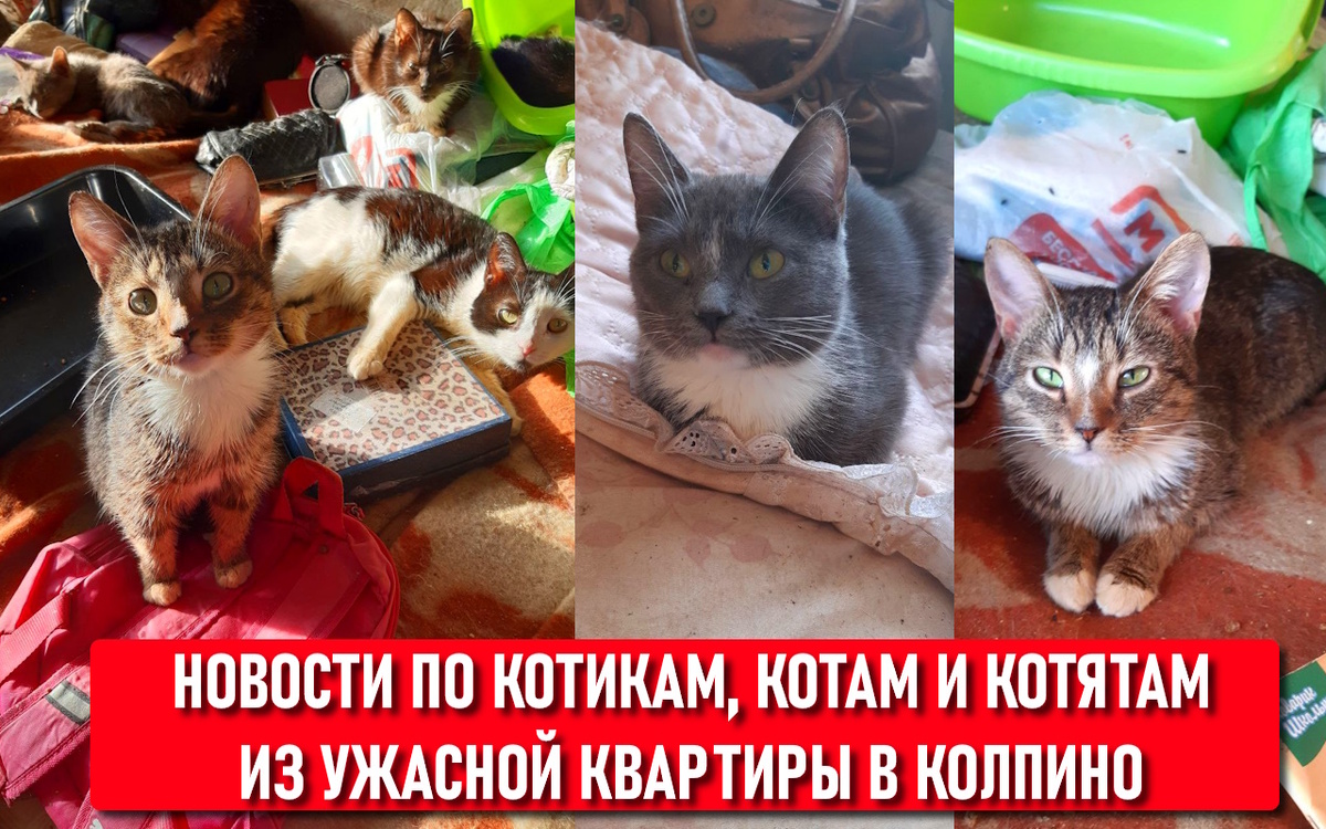Все стали немного спокойнее и не так кидаются на еду. Люди присылают анализы тех, кого забрали + приходят анализы из клиники в Колпино - коты по анализам чистые, единственная проблема на данный момент - это сильное истощение, безостановочный аппетит и проблема со стулом из-за этого. Сейчас коты перешли на корм для чувствительного пищеварения. Волонтеры сейчас ищут некоммерческое помещение, чтобы перевезти туда котов и оттуда уже всех раздавать, лечить, так как в квартире им приходится надевать на себя костюмы хим защиты. Заказали дезковрики, рециркулятор, кварц и тд
