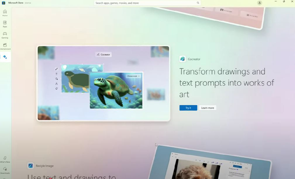 Новая версия в первую очередь нацелена на пользователей ПК Copilot+ с NPU, которые обеспечивают работу ИИ-опций Windows Studio Effects, Live Captions, Paint Cocreator, Recall, Click to Do и других. При открытии обновлённой страницы Microsoft Store демонстрирует такие функции.