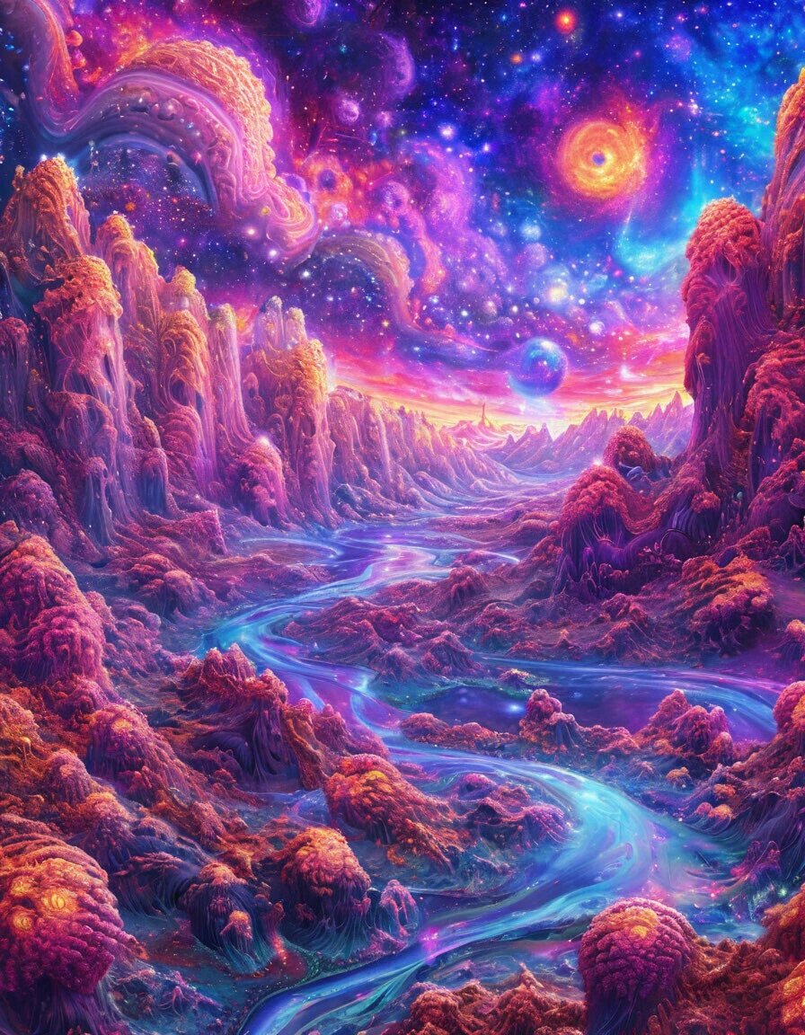 - Абстрактные композиции — уникальные узоры, фракталы и геометрические формы, созданные AI.