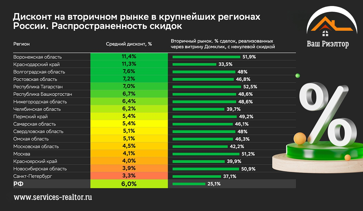🪙Размеры скидок на вторичное жилье: данные по регионам России🔖