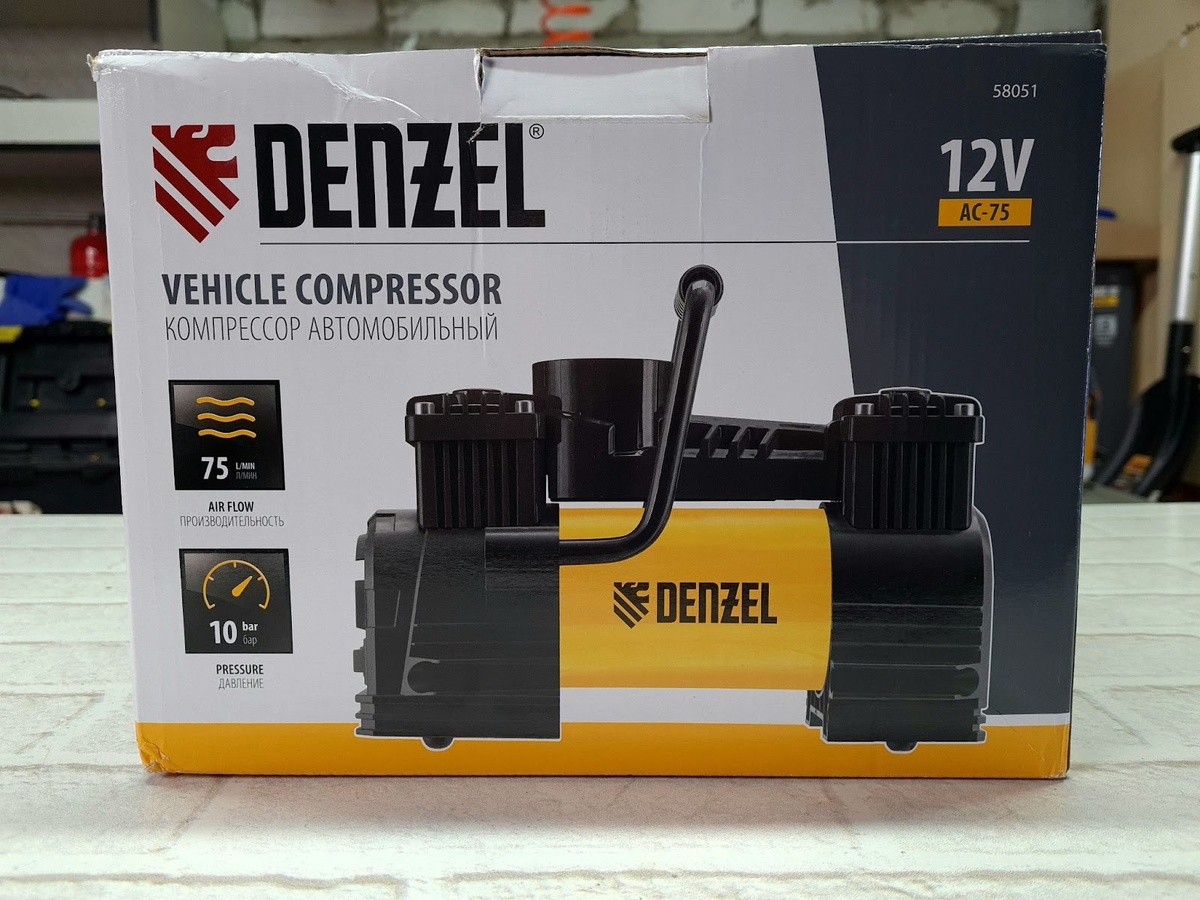 Опытный автолюбитель всегда держит в багажнике насос. Раньше были ручные и ножные модели, а со временем прогресс дошел до электрических. В этой статье познакомимся с автомобильным компрессором повышенной производительности Denzel AC-75. Автомобильный двухпоршневой компрессор Denzel AC-75 поставляется в картонной коробке, на которой отмечены основные технические характеристики. Комплект поставки включает руководство по эксплуатации. Гарантийный талон размещен на последних страницах инструкции. Сумка, входящая в комплект, удобна для хранения и транспортировки компрессора. В ней предусмотрено два отсека – для самого оборудования и для шланга. Компрессор и шланг отлично помещаются в сумку. Сумка оснащена крепкой ручкой и надежными застежками, которые обеспечивают безопасность компрессора при транспортировке. В комплект входят насадки для накачки мячей, надувных матрасов и т.д. Спиральный шланг длинной 5 м имеет аналоговый манометр. Быстросъем позволяет отсоединять шланг от компрессора без