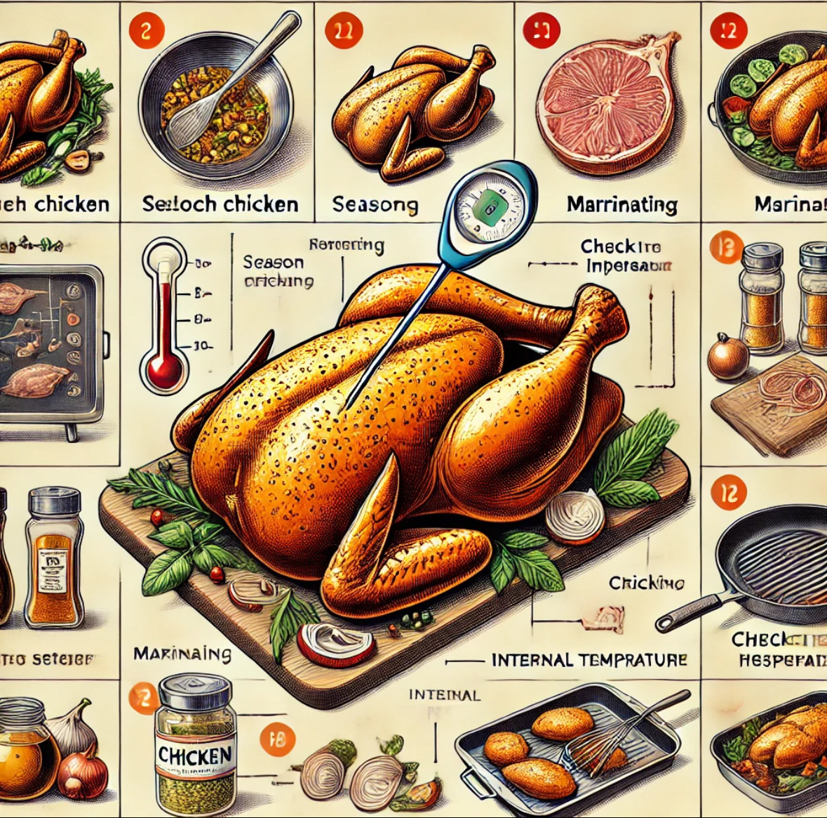 Теперь переходим к различным методам приготовления курицы. Важно помнить, что внутреннюю температуру куриного мяса нужно доводить до 74°C (165°F) для безопасного употребления.