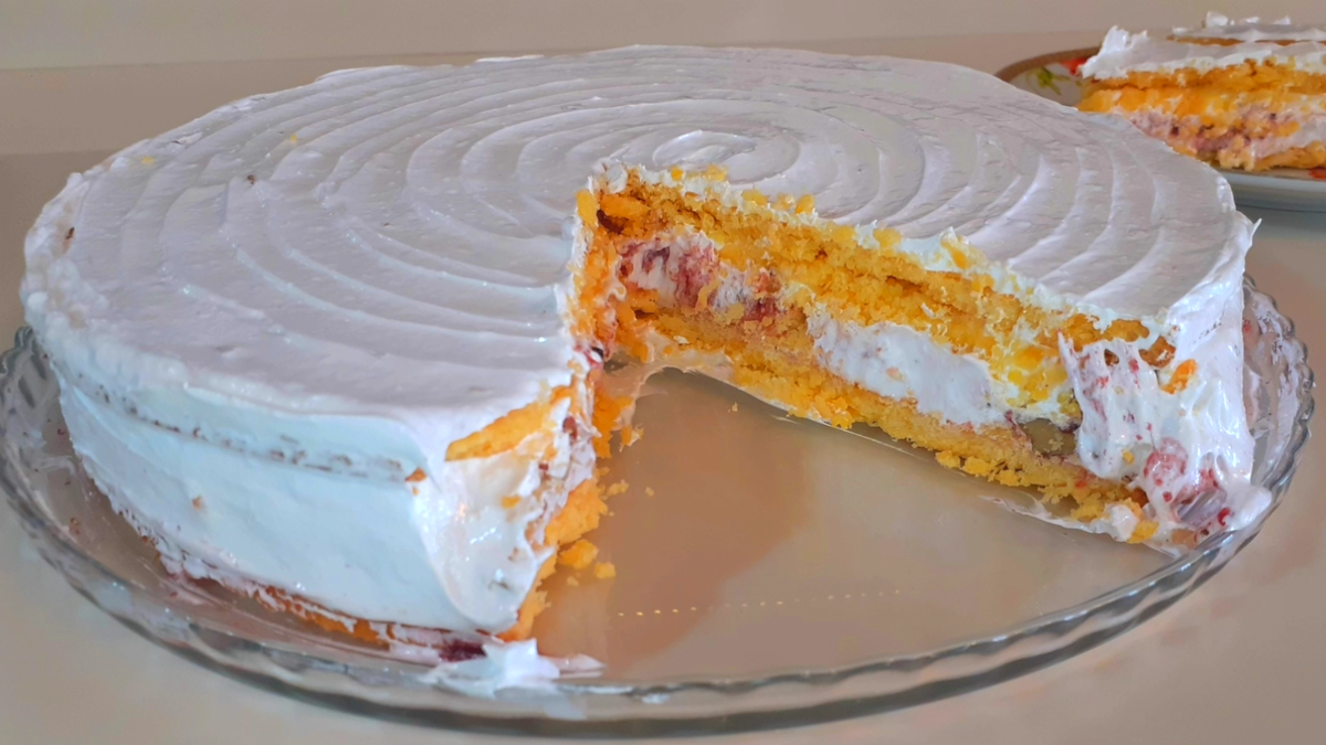 Домашний песочный торт, это очень простой рецепт вкусного торта дома. Рассыпчатые песочные коржи на желтках, белково-заварной крем, ягодный сироп. Домашний торт, вкусом из детства.