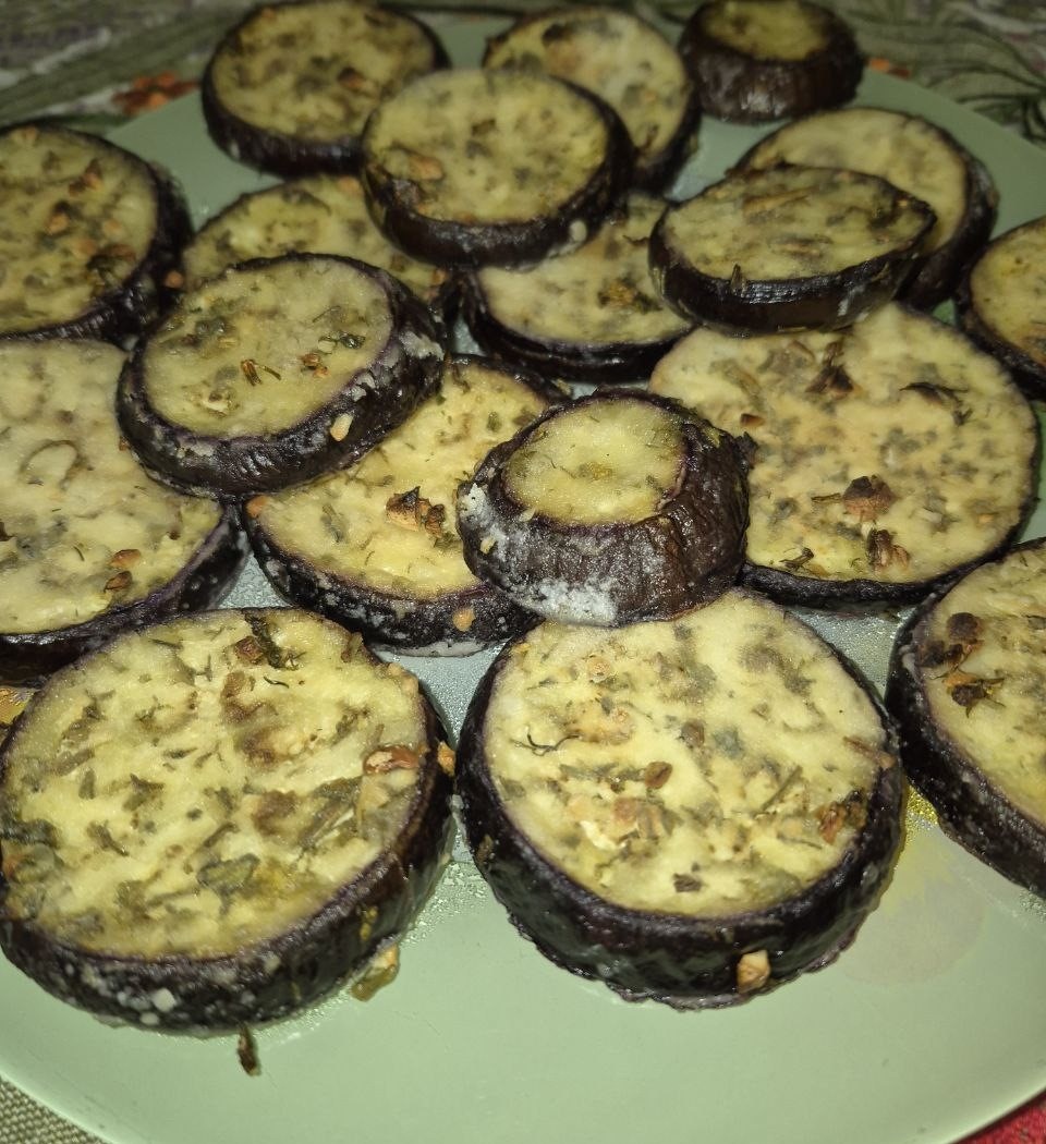 - растительное масло Да, и естетсвенно можно обойтись без маринования с зеленью и чесноком. Просто высушить соленые баклжаны бумажным полотенцем и затем обвалять их в кукурузном крахмале. Далее также сбрызнуть растительным маслом и запечь их в духовке. Приятного аппетита!