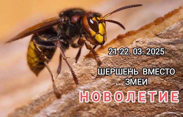 Ровно через месяц, наступает Новое Лето, (именуемое нынче Годом). С 21-го на 22-е марта по родному славяно-русскому календарю в праздник Новолетия Лето тёмного Лося (2024) 0ххпередаст эстафетную палочку Лету жалящего Шершня (2025) Год Змеи, наступивший по неродному византийскому календарю, утверждённому Петром I, соответствует китайскому гороскопу. А ведь наша страна не Китай! Мы находимся севернее Китая, в северо-восточной части Евразии. Поэтому нами правят созвездия (по-старинному чертоги) совсем другие, нежели у китайцев. А именно: Кони, Лоси, Волки, Белки вместо Кроликов, Крыс, Змей и Драконов. И 22-го марта все наши соотечественники будут дружно встречать и прославлять Жалящего Шершня - покровителя и хозяина Ближнего Неба и грядущих 365 дней! У наших Предков была замечательная культура, замечательные обряды, традиции, песни. Всё, абсолютно всё! было наполнено пользой. Пустоты и праздности не было! Полный Славянский гороскоп означал совершеннолетие, малый Сварожий круг, и
