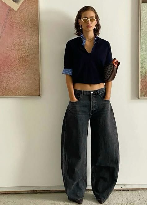 Джинсы-бочки, более широкие на бедрах и сужающиеся к щиколотке, обещают стать фаворитом года. Такое моделирование создает цилиндрический эффект, который придает стильный и современный вид даже самым простым комбинациям.
