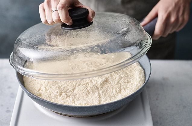 Чтобы сделать пышный омлет-суфле, нужно хорошо взбить яичные белки. Это наполнит их крошечными пузырьками, которые разбухнут, создавая красивую консистенцию. Чтобы проверить готовность, поднимите венчик, чтобы увидеть, образуются ли мягкие пики.
