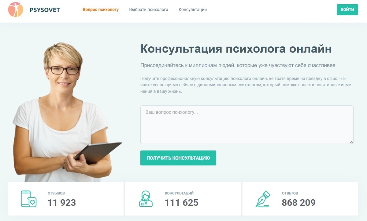 - Оценки: проведено 14370 часов консультаций, 94% рекомендуют службу