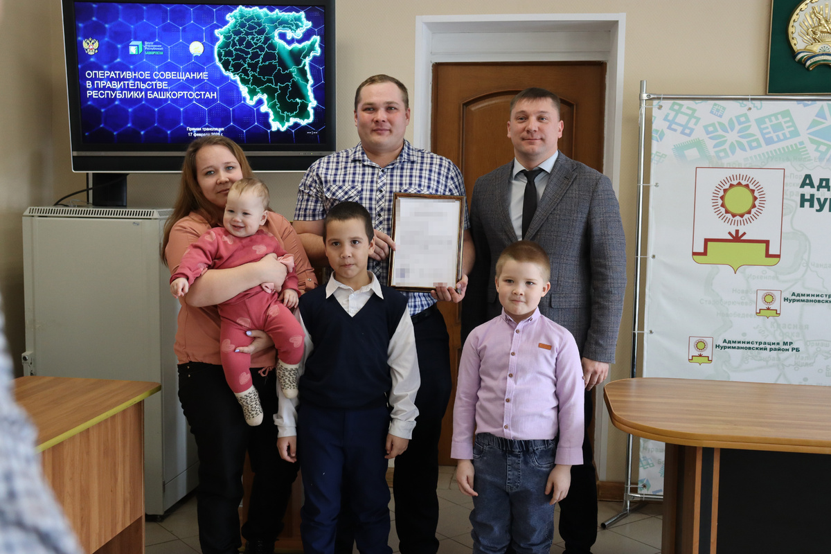 Счастливыми обладателями свидетельства о праве на получение социальной выплаты стала семья Хазиахметовых из села Новокулево В рамках реализации мероприятия по обеспечению жильем молодых семей федерального проекта «Содействие субъектам Российской Федерации в реализации полномочий по оказанию государственной поддержки гражданам в обеспечении жильем и оплате жилищно-коммунальных услуг» государственной программы Российской Федерации «Обеспечение доступным и комфортным жильем и коммунальными услугами граждан Российской Федерации» молодая семья Азата и Анжелы Хазиахметовых из села Новокулево получила свидетельство о праве на получение социальной выплаты на приобретение жилого помещения или создание объекта индивидуального жилищного строительства. Молодая семья Хазиахметовых вошла в число участников мероприятия в январе 2020 года. Спустя четыре года, после рождения третьего ребенка, их очередь на получение государственной поддержки была ускорена. Это стало возможным благодаря статусу многодет