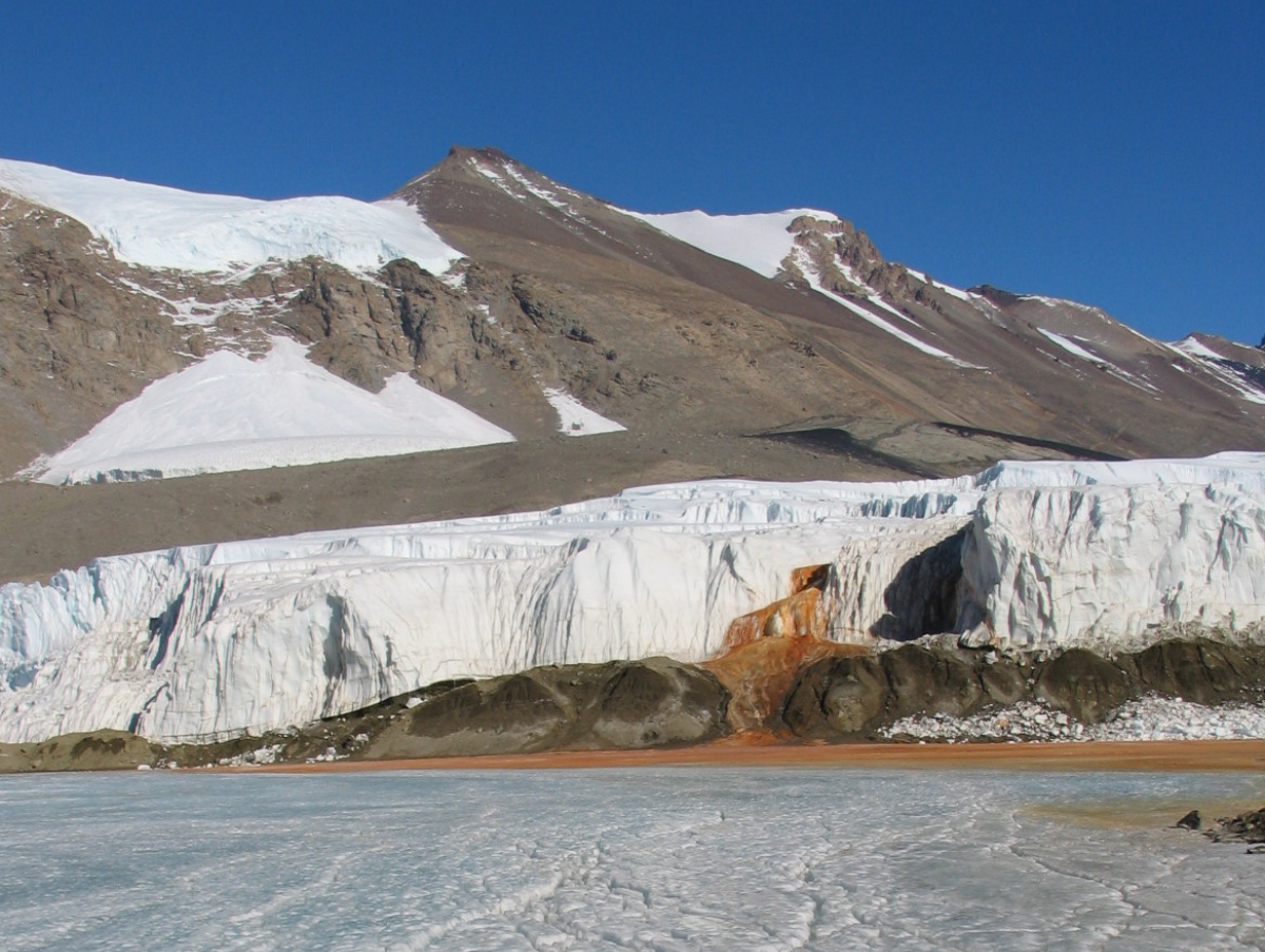 - В Антарктиде есть водопад, который течёт красным, словно кровь. Это «Кровавый водопад», и его цвет обусловлен высоким содержанием железа в воде.