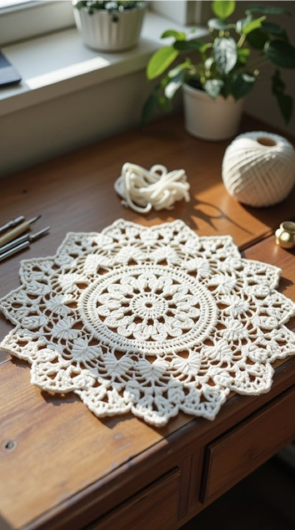 Красиво вязаные салфетки смотрятся на фотосессиях, добавляя кадру винтажности и теплоты.