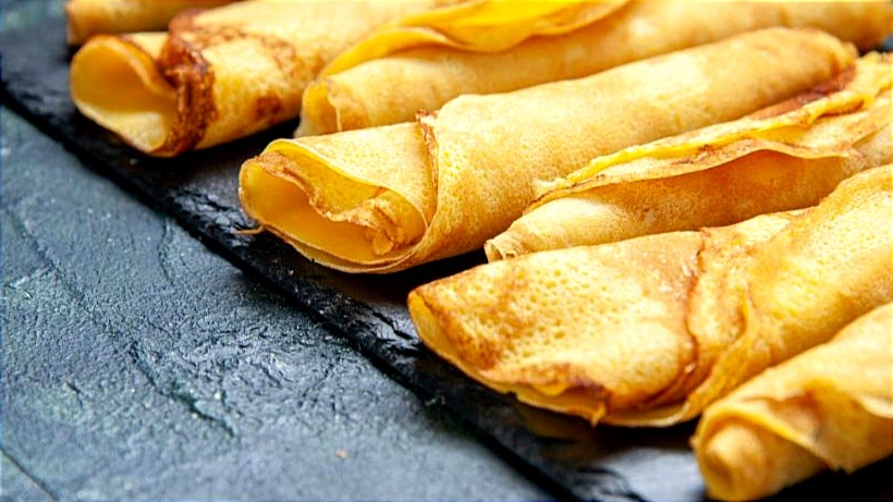 - Готовые блины складываем стопочкой на тарелку. А дальше – полет фантазии! Можно полить медом, сметаной, вареньем, посыпать ягодами, орехами, шоколадом. Или просто свернуть трубочкой и подать к чаю.