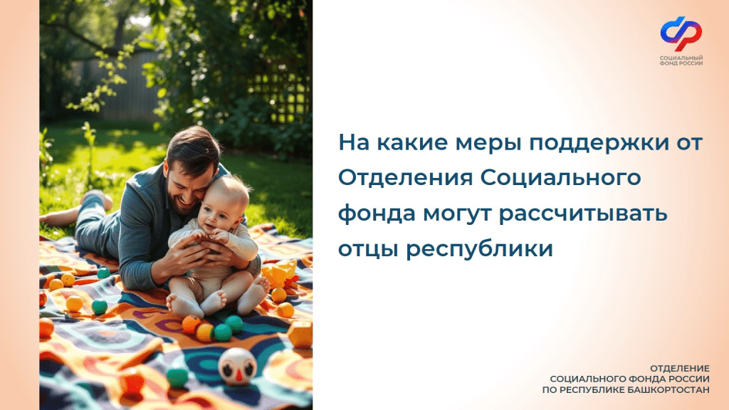 За назначением мер социальной поддержки в связи с рождением и воспитанием ребенка в основном обращаются матери. Однако отцы также имеют право на множество видов государственной поддержки, осуществляемых Отделением Социального фонда по Республике Башкортостан. В преддверии Дня защитника Отечества рассказываем о социальных и страховых гарантиях для пап. И так, папа может: Получить единовременное пособие при рождении ребенка. Это пособие может получить один из родителей. Если оба родителя работающие или неработающие, то получатель определяется на семейном совете. Но если, к примеру, папа работающий, а мама нет, то Социальный фонд выплатит пособие только работающему отцу и наоборот. В Башкортостане сумма выплаты составляет 30 982,97 рублей с учетом районного коэффициента. В 2024 году это пособие выплачено более 4 тысячам отцов малышей. Оформить пособие по уходу за ребенком до полутора лет. Выплата назначается оформившему одноименный отпуск работающему родителю (или родственнику). При этом