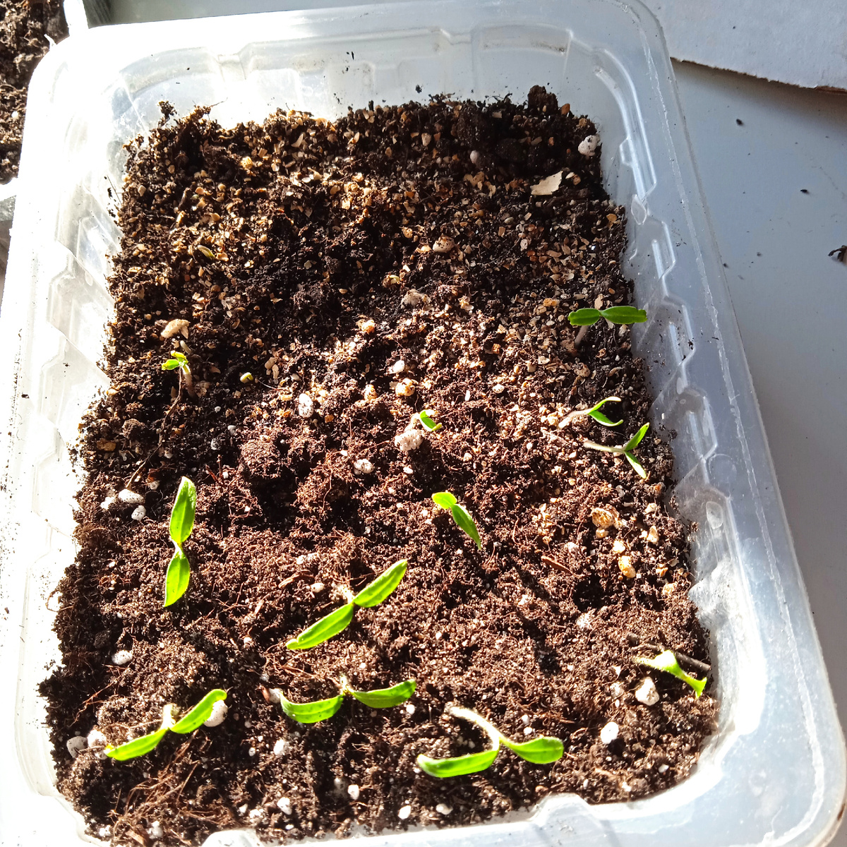 Обиделась зима на нас, за то,что жаловались на сырость и грязь, вот и получайте морозы! У нас и днем температура низкая, хоть и солнышко светит, а ночами морозы до -20 доходят. Если учесть, что снега " кот наплакал", то-это много. Потерпим, ждать осталось совсем немного, со следующей недели грядет потепление, вот и посмотрим, что нам эта зима насюрпризила! Ну , как бы зима не злилась, садовод свои обязанности знает четко: сей да сажай! Это мои помидоры Любаша, которые я посеяла 11 февраля. Обычно они уже на третий день выскакивали. А тут , ходила , заглядывала каждый день, а их все нет. Думала, что невсхожими оказались. Но потом , как-то нехотя стали появляться. Но почему так странно, не могу объяснить. Они до сих пор всходят, может и все взойдут, но непонятно почему так неравномерно. Условия ведь одинаковые. Но для ранних, мне и этих будет достаточно. Первые два рядочка подсыпала сегодня, а то они вытянулись. А это лук чернушка. Какой же он тугодум! Посеян тоже 11 февраля, но вот тол