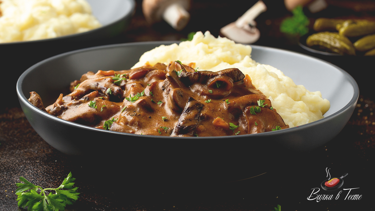 Сегодня будет рецепт классического бефстроганова. Бефстроганов — это традиционное русское блюдо из мелко нарезанных кусочков говядины, тушенных в сметанном соусе. Основные компоненты: говядина, лук, грибы, сметана, бульон, мука для загущения, возможно, томатная паста или горчица. Некоторые рецепты включают вино, но в классическом варианте его может не быть. Мясо должно быть нарезано соломкой, быстро обжарено, затем тушится с соусом. Нужно обратить внимание на правильную последовательность действий: обжарка мяса, приготовление соуса, тушение. Классически бефстроганов подают с картофельным пюре или рисом. Рецепт: Бефстроганов классический