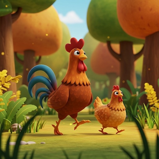Жили курочка с кочетком. Пришли они в лес по орехи. Кочеток залез на орешню орехи рвать, а курочке велел на земле подбирать. Кочеток кидает, а курочка подбирает. Вот кинул кочеток орешек и попал курочке в глазок. Курочка пошла — плачет. Едут мимо бояре и спрашивают: — Курочка, курочка! Что ты плачешь? — Мне кочеток вышиб глазок. — Кочеток, кочеток! На что ты курочке вышиб глазок? — Мне орешня портки разорвала. — Орешня, орешня! На что ты кочетку портки разорвала? — Меня козы подглодали. — Козы, козы! На что вы орешню подглодали? — Нас пастухи не берегут. — Пастухи, пастухи! На что вы коз не бережете? — Нас хозяйка блинами не кормит. — Хозяйка, хозяйка! На что ты пастухов блинами не кормишь? — А у меня свинья опару пролила. — Свинья, свинья! На что ты у хозяйки опару пролила? — У меня волк поросеночка унес. — Волк, волк! На что ты у свиньи поросеночка унес? — Я есть захотел.