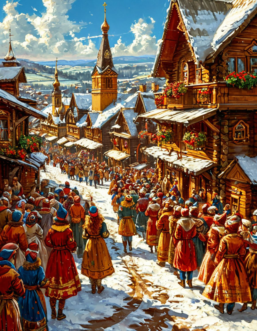 На рассвете, когда снег хрустел, словно сахарная глазурь, деревенские мужики тащили на околицу старые сани, обвитые лентами. В них усаживали чучело Марены — соломенную бабу с угольными глазами и клюквенными губами. Её наряжали в цветастый платок тёти Груши, которая шептала: «Погоди, весну позовёшь — сама в пепел превратишься». Детишки, облепленные варежками на верёвочках, бегали вокруг, крича: «Марена-обманщица! Льда не удержишь!». Среда — Лакомка.