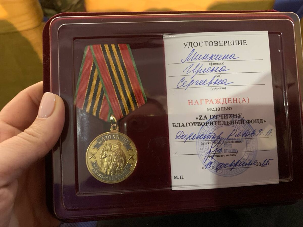Волонтерскую медаль мне вручили в Общественной палате РФ, в рамках мероприятия благотворительного фонда «За Отчизну».