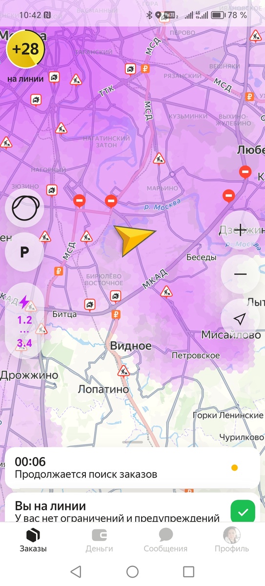 Короче в 10:42 включила яндекс. Как раз город горит спросом - значит можно покататься.