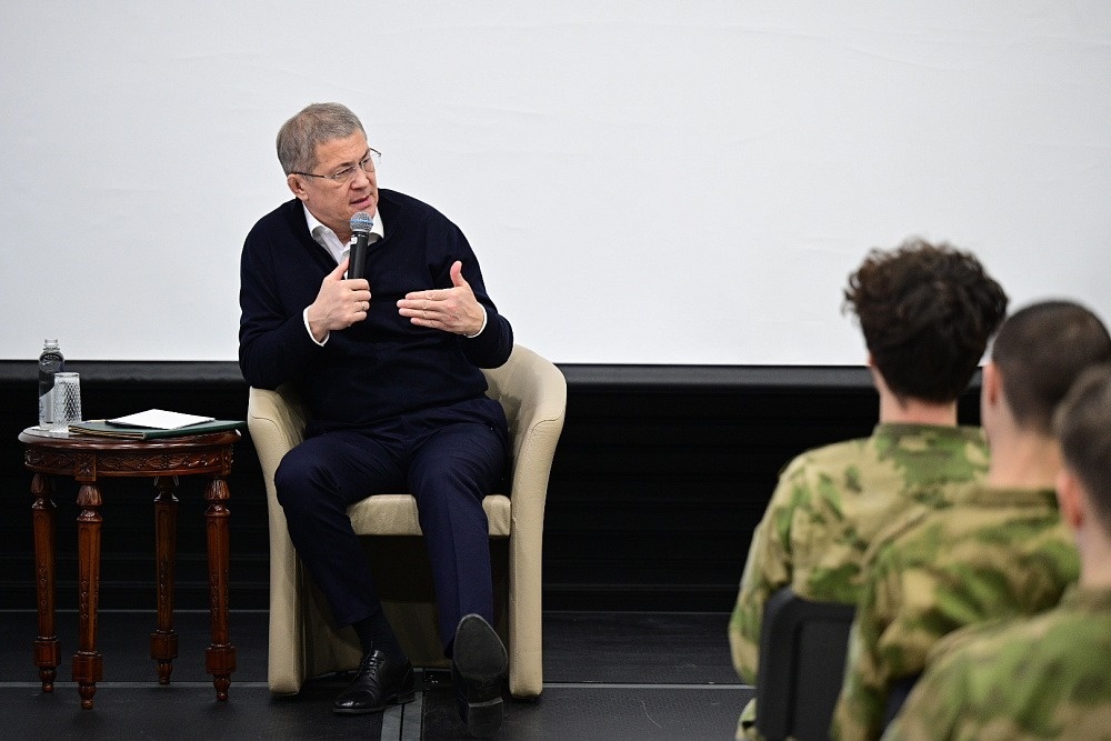 В преддверии Дня защитника Отечества Глава Башкирии Радий Хабиров встретился в парке «Патриот» с десятиклассниками, которые приехали на учебные сборы. В беседе участвовали ребята из Илишевского, Иглинского, Альшеевского районов и Уфы. Руководитель региона обратился к парням и сказал, что главное в жизни быть достойным человеком, настоящим мужчиной. Подготовка на тренировочной базе обязательно пойдет на пользу. В России нынешний год объявлен Годом защитника Отечества, а в Башкирии – Годом поддержки участников СВО и членов их семей. Помощь всей республики, которая оказывается военнослужащим с начала спецоперации, безусловно, облегчает им жизнь. – Уверен, что каждый из вас тоже помогает нашим военнослужащим – кто-то плетёт масксети, кто-то делает окопные свечи или собирает необходимые вещи. Всё это очень важно, и ребята ждут этого от нас, – обратился к школьникам Радий Хабиров и добавил, что воины уже три года живут в блиндажах, палатках, землянках и несут все тяготы военной жизни. Ученик