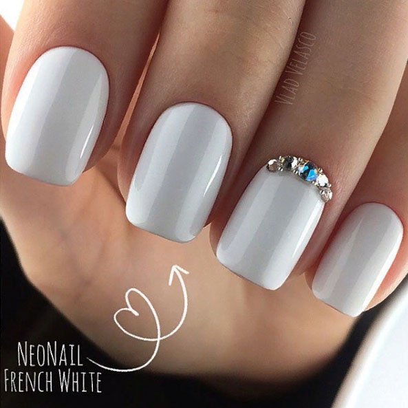 Этот дизайн выполнен в классическом стиле и дополнительным украшением в виде кристаллов на одном ногте. Это идеальный вариант для невест или для тех, кто хочет добавить немного роскоши в повседневный образ. 💍 2️⃣ Темный маникюр с металлическими акцентами