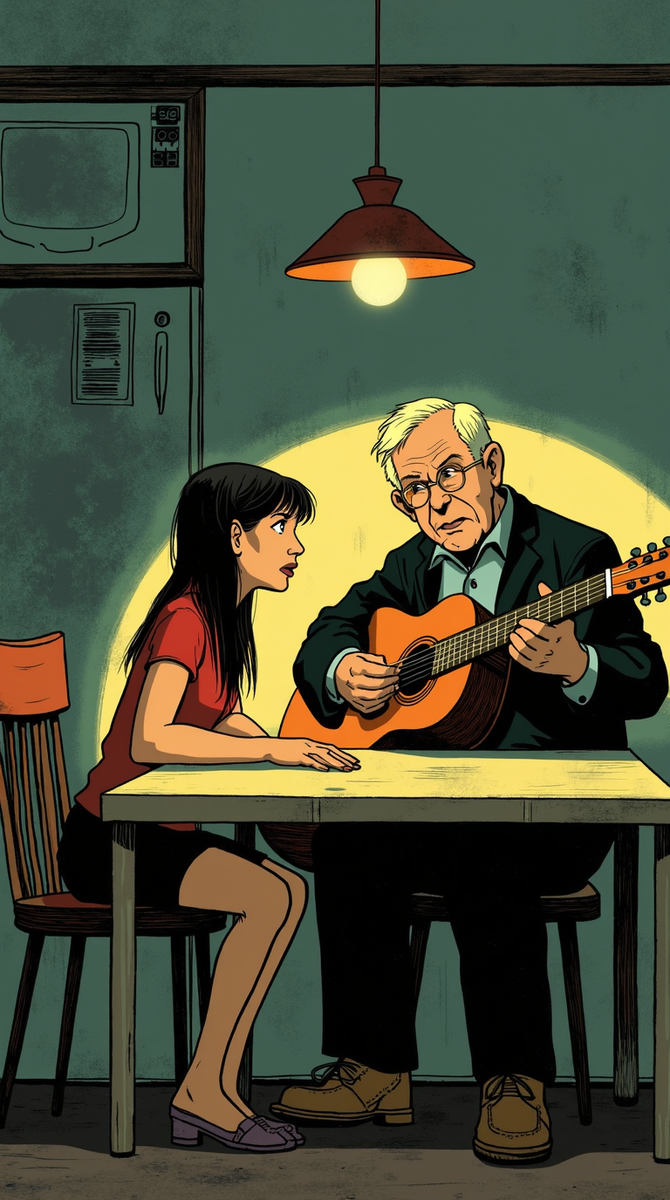 Я сидела за столом, пила чай, уже остывший, и слушала, как папа бренчит на своей старой гитаре в соседней комнате. Мне двадцать пять, я только что бросила работу в офисе, где три года гнила за компом, выписывая бесконечные счета и слушая, как начальница орёт про дедлайны. Переехала обратно к нему в нашу старую квартиру в Питере — панелька на окраине, где окна выходят на серый двор, а в подъезде вечно воняет кошками. "Лера, ты всегда можешь вернуться", — сказал он тогда по телефону, голос у него был хриплый, но тёплый, как будто он не просто приглашал, а звал домой. Я вернулась, потому что идти больше было некуда — ни денег, ни сил, ни желания тащить эту взрослую жизнь, которая навалилась на меня, как мокрый снег. Но теперь, глядя на него, на эту его гитару с потёртым грифом, на его вечные байки про молодость, я думала, что, может, зря всё это затеяла. Может, мне стоило остаться в своей съёмной комнате и дальше грызть себя за то, что я никому не нужна.