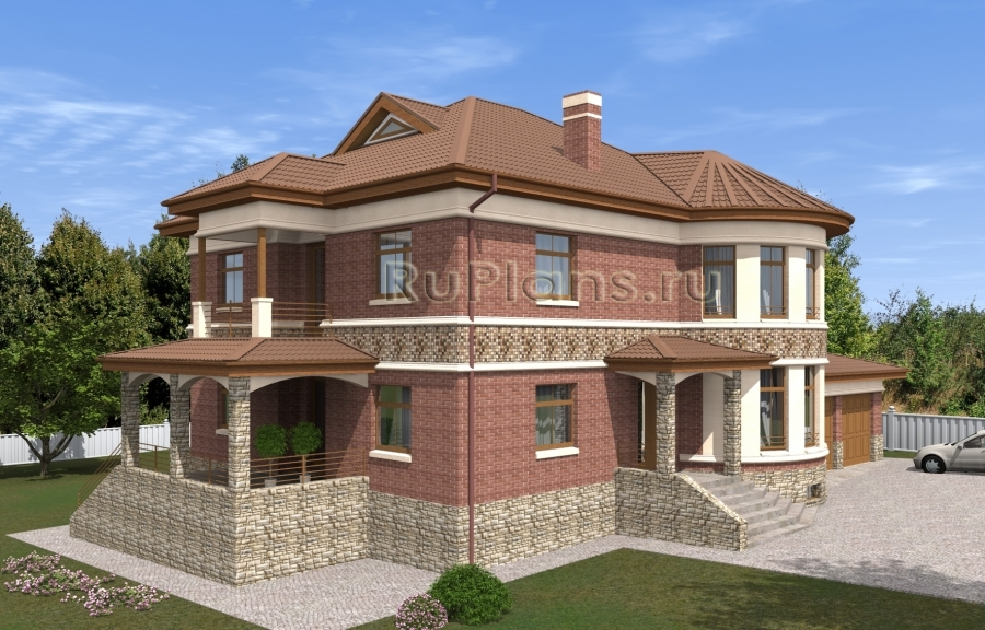 Проект просторного двухэтажного дома с подвалом, мансардой и гаражом на две машины Rg5016 Фасад2