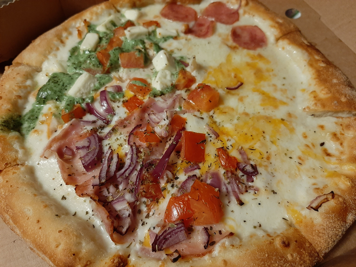 Пиццу привезли весьма тёплой, тесто вкусное. Ела я её 3 или 4 дня, там она уже подсохла, лучше съедать за 2.