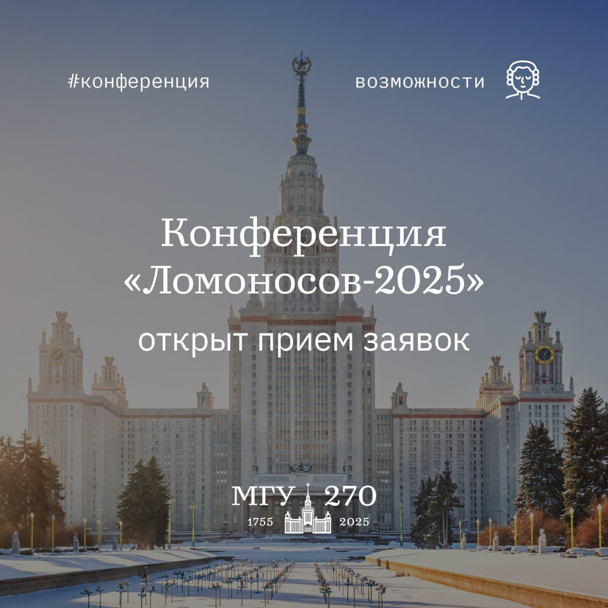В 2025 году в МГУ с 11 по 25 апреля пройдёт традиционная международная научная конференция студентов, аспирантов и молодых учёных «Ломоносов». В рамках конференции будет организовано 48 секций, охватывающих все основные направления современной фундаментальной и прикладной науки. Цель конференции — стимулировать творческую активность студентов, аспирантов и молодых учёных, привлечь их к решению актуальных научных задач, сохранить и укрепить единое международное научно-образовательное пространство, установить контакты между будущими коллегами. Рабочие языки конференции — русский и английский. К участию в конференции приглашаются студенты (специалисты, бакалавры или магистры), аспиранты, соискатели и молодые учёные в возрасте до 35 лет включительно, как из России, так и из других стран. Это могут быть учащиеся или сотрудники российских и зарубежных вузов, аспиранты и сотрудники научных учреждений. Важно: приём заявок заканчивается 3 марта включительно. Подробнее — по ссылке. Не упустите в