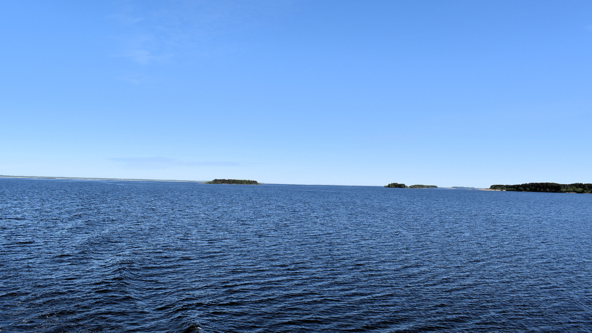 Проснувшись утром я увидел бескрайние просторы Рыбинского моря. За ночь теплоход прошел путь от поселка Шексна, до села Коприно. Мы миновали промышленный центр Вологодской области, город металлургов, Череповец. К сожалению большую часть Рыбинского водохранилища мы прошли ночью. И под утро оказались в Ярославской области. Постепенно берега рукотворного моря стали сближаться и вот уже появился поселок Коприно.