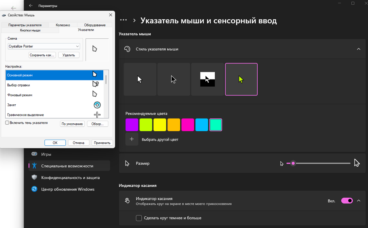 Если стандартные указатели не устраивают, можно скачать пользовательские схемы курсоров.