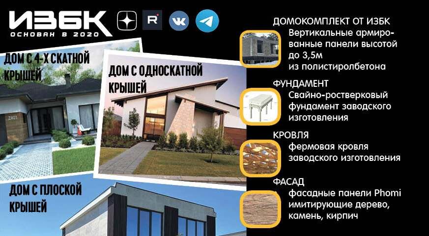 Так-же есть возможность заказать домокомплект, фундамент, кровлю и фасад отдельно... У людей часто формируется вкус, благодаря насмотренности. Многие не помышляют о том, чтобы делать дома не как у соседей. Когда же человек путешествует, чаще видит как оно бывает иначе. Задумывается о выгодах от не стандартных, типовых решений. Например дом с плоской крышей. Крытым бассейном. Жить становится интереснее. В то время как крупные компании всё больше напоминают супермаркеты - "Бери и не задерживайся на кассе". ИЗБК старается уйти от шаблонных стандартов. У нас под проект менялись размеры плит перекрытия. Увеличилась высота потолков - переходом на вертикальные стеновые панели. Так-же уменьшилось проникновение холода между швов(ведь в блоках и мегаблоках в разы больше стыков). Оконные проёмы теперь делаются доборами, тоесть адаптивными под любой разм