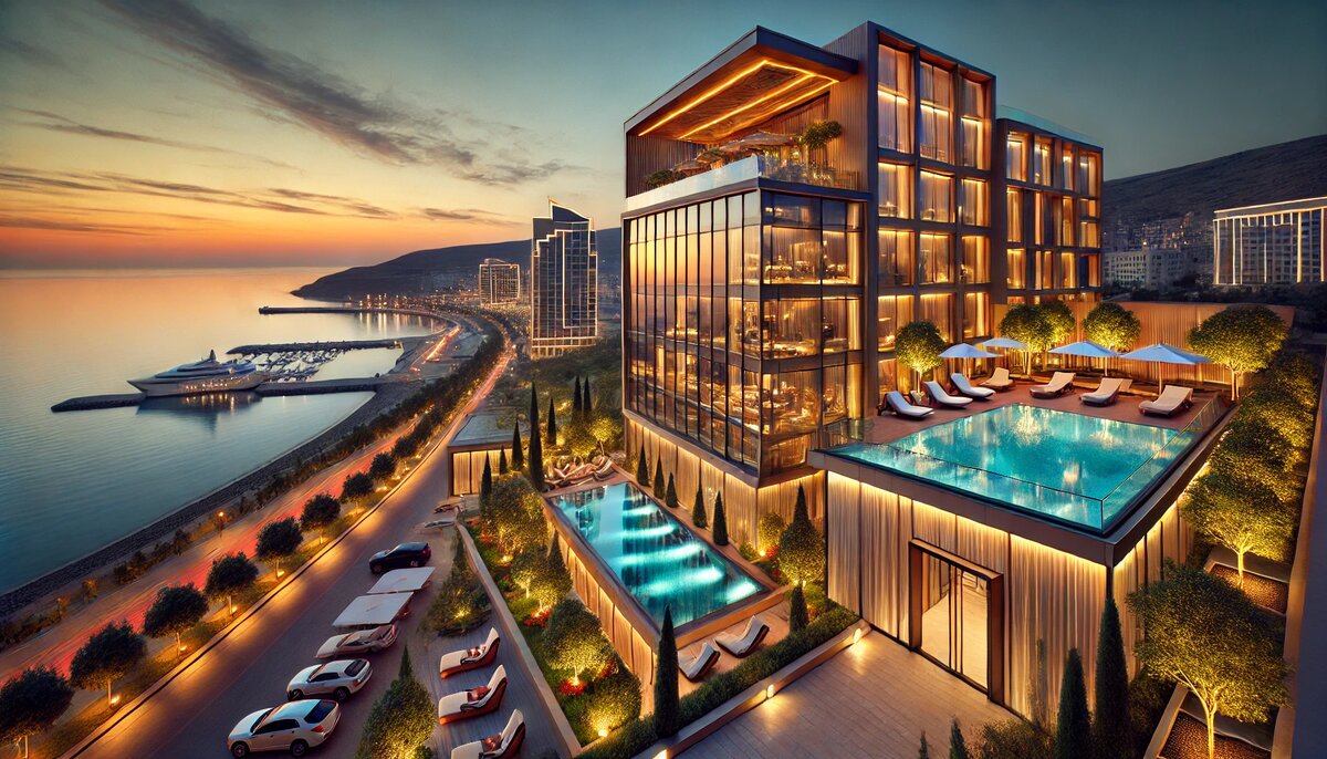 Современный отель с видом на Каспийское море, предлагающий комфортабельные номера, спа-центр, фитнес-зал и несколько ресторанов. Особенностью является вращающийся бар на крыше с панорамным видом на город.