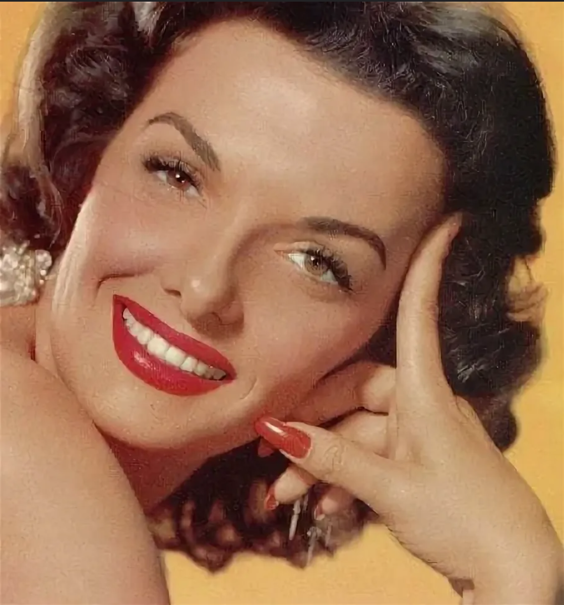 Расселл славилась своей красотой, фигурой и очень яркой внешностью.
