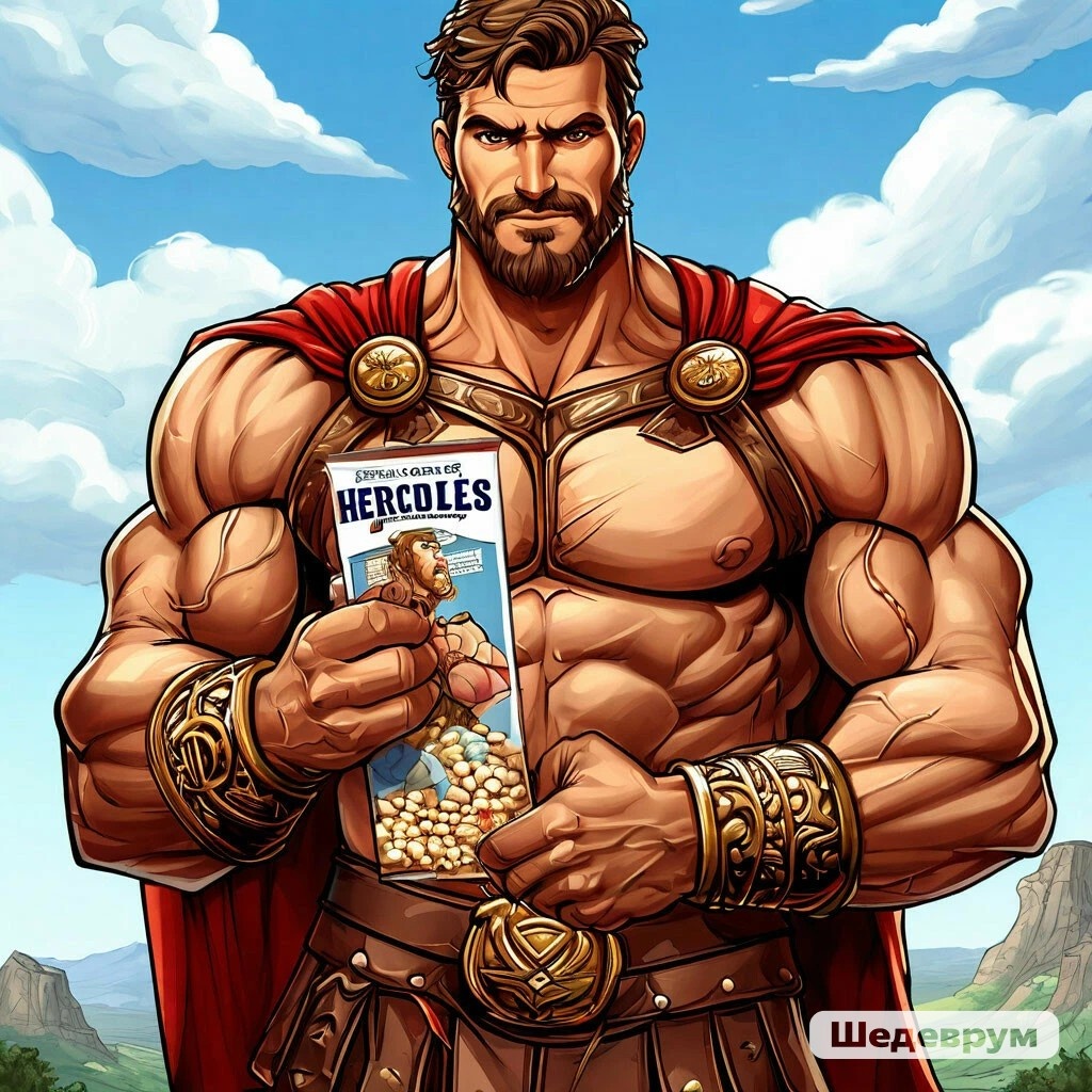 Геркулес Будни Сергея Владимировича. Геркулес. Каждое утро мама варит кашу. Каша полезная, каша вкусная, каша, каша, каша... Стащил я тут коробочку, а на ней написано : " Геркулес". Это же в Риме парень был- Геркулес, герой. Моя мама любит конечно с утра нас кашей мучить, но не додумалась назвать меня в честь нее. И на том спасибо. А вот парню этому, повезло меньше... Странные у него родители конечно. "Геркулес Томилов - прикольно. Я бы папу на работу в одной руке носил, а Ваську в садик во второй .Хотя нет, пусть пешком топает, она мне конфету зажала и кричала потом, когда я в честном бою отобрал конфету. " Так меня эта мысль вдохновила, что я решил: " Перейду на усиленное кашное питание" - Так инструкция... А, и так понятно!- я притащил бутылку с водой. Бутылка не открылась, кастрюля высоко, -буду есть так. - Фу, какая гадость !- хлопья прилипли к зубам, а силы не прибавилось. Но я так просто не сдамся. Четыреста грамм хлопьев-это целое море! - Як!- позвал лучшего друга- пошли силы