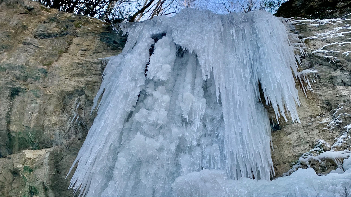 Этот миниатюрный водопад вблизи села Богатое Ущелье долгое время «прятался» в тени известных крымских водопадов Учан-Су и Джур-Джура. Причина проста, Суаткан относится к эфемерным водопадам и летом пересыхает. Но зато зимой к нему спешат туристы, посмотреть на красивую бахрому из сосулек. Сразу замечу, что ледяная красота случается не каждую зиму, нужен мороз. А в Крыму холод в дефиците. Перебои с поставками. Село Богато Ущелье — настоящая Крымская глубинка. Очень много старых домов. За последние 10-15 лет появилось несколько гостиниц. Оставляем машину в центре, у мечети и начинаем путь. День выдался холодный, утренние узоры покрыли стекло машины, что в нас тоже редкость. Идти всего ничего, чуть больше двух километров. При входе в лес перешагиваем ручей. Вот на нем и находится наш Суаткан. Что может быть при таком скромном количестве воды? Кстати, осенью тут тоже красиво. Разноцветный ковер листвы радует глаз. Высоченные буки хороши в любое время года, даже без листвы. Вскоре появляют