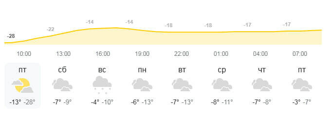 Сегодня днем в городе будет от -14 до -22, ветер — 2 м/с.