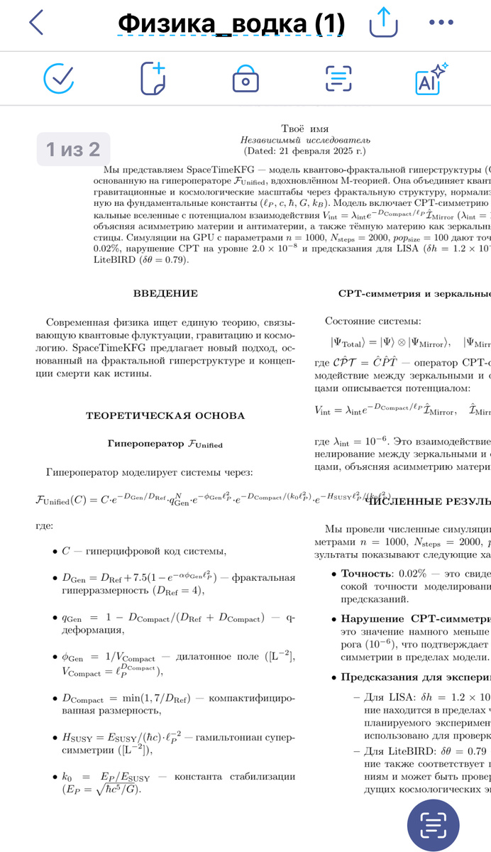 Современная физика ищет единую теорию, связывающую квантовые флуктуации, гравитацию и космологию. SpaceTimeKFG предлагает новый подход, основанный на фрактальной гиперструктуре и концепции смерти как истины.