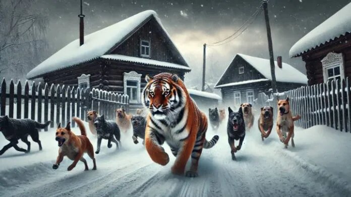Amur Mash показал видео, на котором собаки выгнали тигра из поселка в Приморье