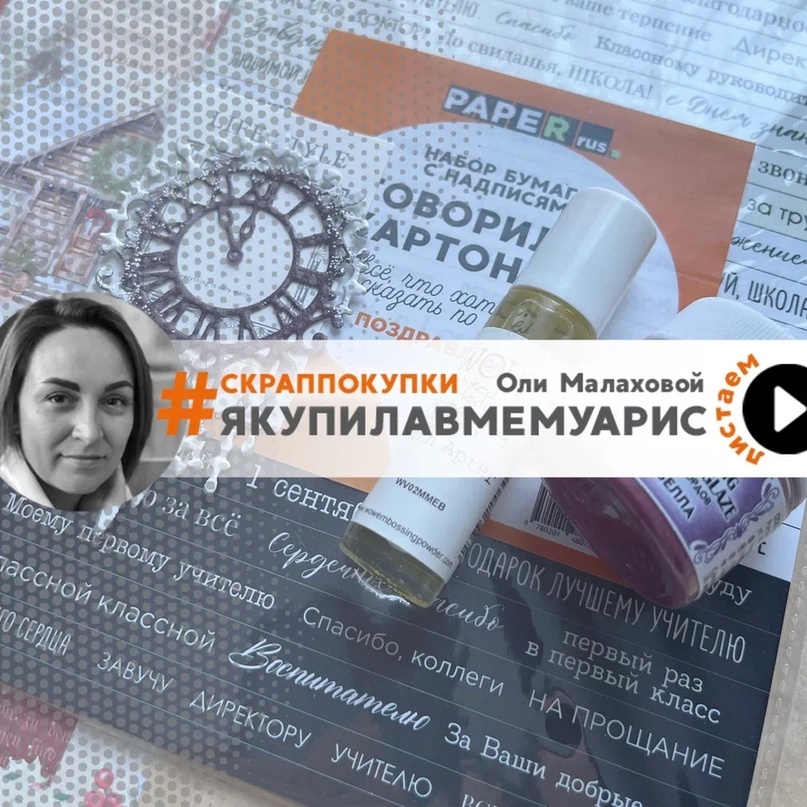 Кто хочет сладких скрап-обновочек? Соскучились по скрап-посылочкам? Мемуарис - главный поставщик скраповых радостей. Давайте вместе посмотрим, что выбрала для своего скрапа Оля Малахова и увидим какая работа сложилась на волнах вдохновения от покупки. Не много я запоздала я с обзором своей посылочки. Вернее, я так вдохновилась пришедшими материалами, что сразу же пустило все в дело. Давайте посмотрим, что же мне пришло. Бумажку я взяла полистно от Scrapodelie, а именно: «Праздник к нам приходит» Лист 4 и Лист 2 , «Снежная даль» Лист 1, Лист 2, Лист 4 , Лист 5. Не смогла я пройти мимо ножичка от Agiart в виде волшебных часов. Пополнила запасы пудрой для эмбоссинга Fractal Paint для чипборда «Изабелла». А если вы еще не пробовали Чернила для эмбоссинга с кистью WOW! Embossing Brush, то однозначно рекомендую! Держит пудру при запекании на отлично, и можно регулировать объем пудры в зависимости от толщины нанесения чернил. И, конечно, мои любимые фразы из набора бумаги с надписями PaperRus