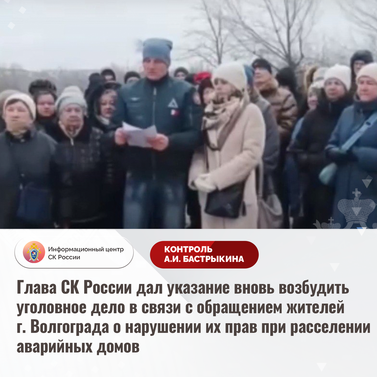 Глава СК России дал указание вновь возбудить уголовное дело в связи с обращением жителей г. Волгограда о нарушении их прав при расселении аварийных домов