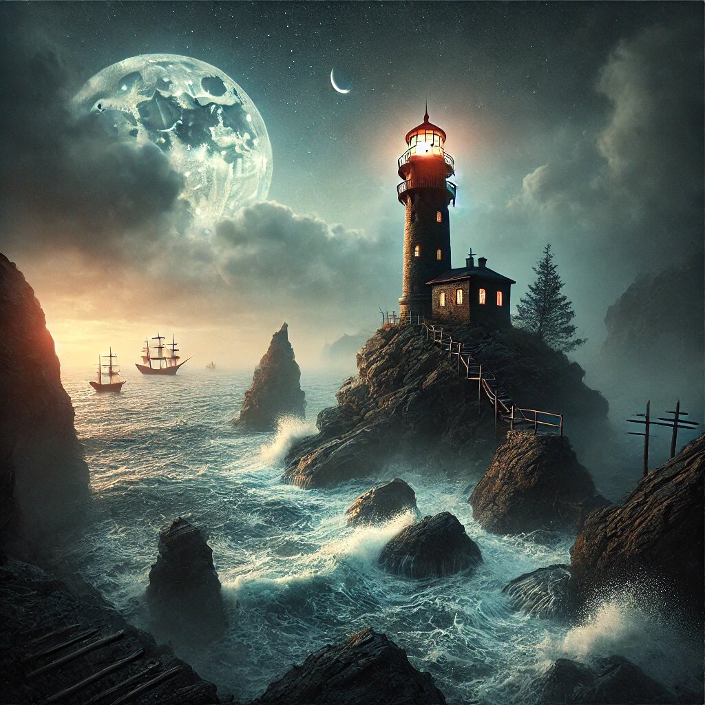 На краю далёкого острова, где море шумело, словно рассказывало старинные сказки, стоял старый маяк. Его белые стены были облуплены от солёных ветров, а свет его фонаря уже давно не зажигался. В деревне говорили, что в маяке живёт дух старого смотрителя, который охраняет берег от бурь и кораблекрушений. Однажды двое друзей, Егор и Настя, услышали, что на острове снова появились огни. Но кто мог их зажечь, если маяк пустует много лет? Никто из взрослых не верил в это, но детям было не по себе. И тогда они решили всё проверить сами. Поздним вечером, когда солнце уже спряталось за горизонт, Егор и Настя взяли фонарик, компас и отправились в путь. Им пришлось пробираться через лес, где шуршали ночные птицы и переговаривались неизвестные существа. — Может, вернёмся? — шепнула Настя.